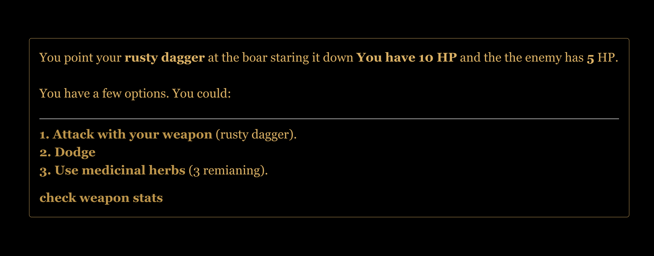 JOURNEY is a text based non-linear game that I made in Twine. I only have Chapter 0 made and it is most likely full of typos and bugs but I thought it was fun.